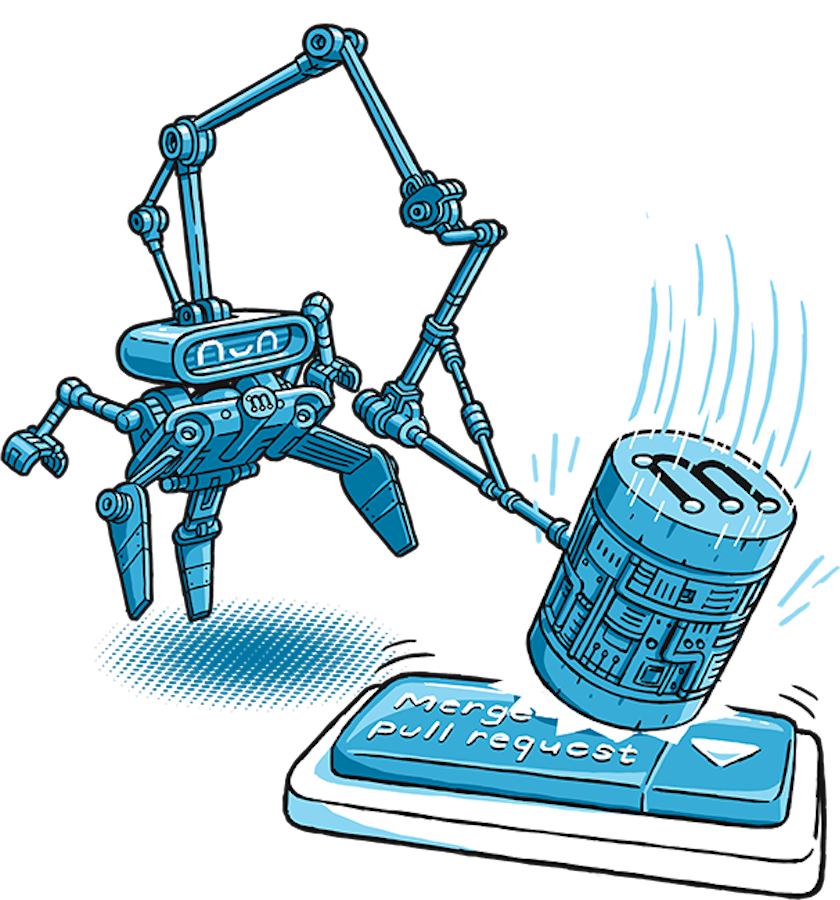 Our bot will take action as soon as your pull request matches any rule you defined. It can do anything: merge, close, comment, request a review, backport, copy, etc.