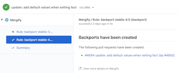 Mergify updates the pull request status in real-time and informs you about the backport status.